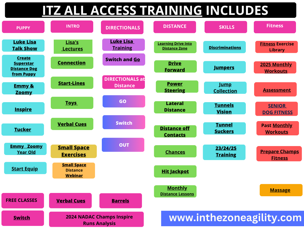 ✅ Access to 40+ online classes (Puppy, Agility, Distance, Massage, Fitness)